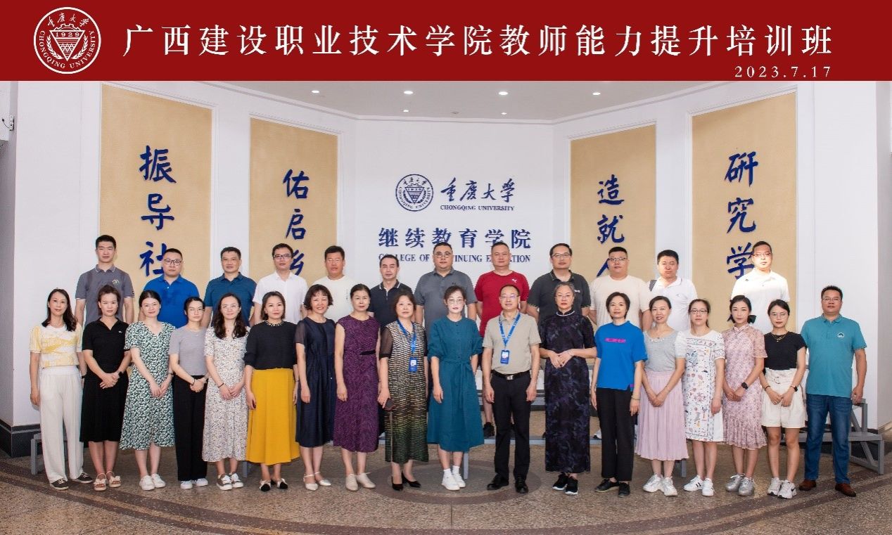 管理工程学院7月23日讯(图/文:邱淦) 为了进一步适应建筑产业升级和深入推进三教改革的需要,切实提高教师课堂教学能力和技能水平,促进教师的专业发展,力求打造高素质的师资队伍,2023年7月16日~22日,我院选派30位骨干教师赴重庆大学参加“建筑类职业学院教师能力提升培训班”,此次培训以“专题讲座+现场教学”相结合,时间虽然短暂,但老师们收获满满。