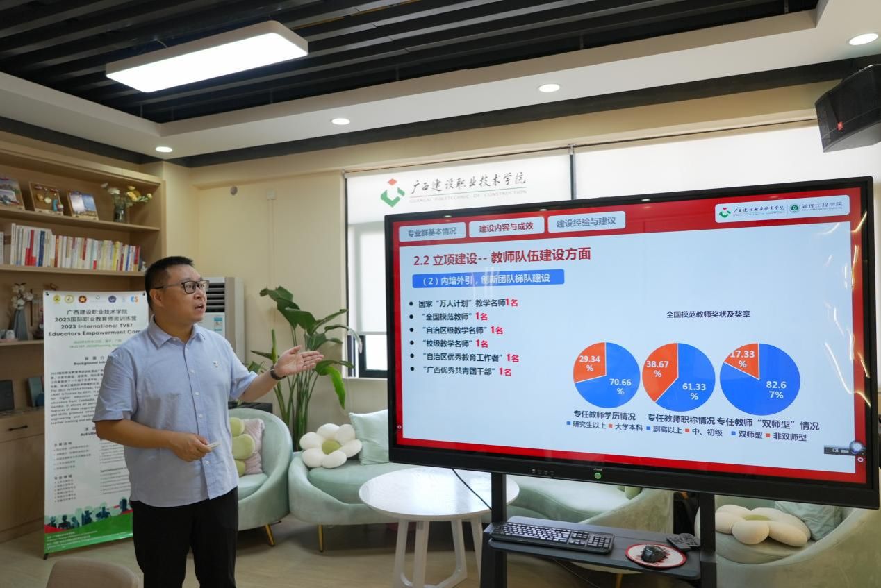 柬埔寨国家技术培训学院(NTTI)专业教师毛·威斯纳先生也应邀作了专题讲座,分享了该学院的愿景和使命、组织结构、团队资质、人才培养、校园环境、发展历程、建设工程管理领域的专业经验和成果等,为与会教师们带来了宝贵的启示和思考。