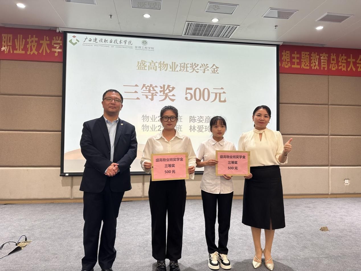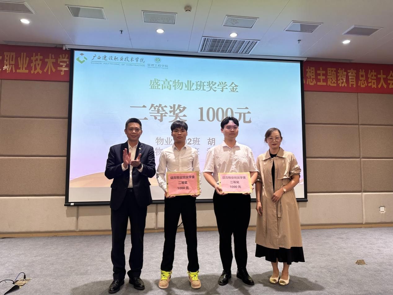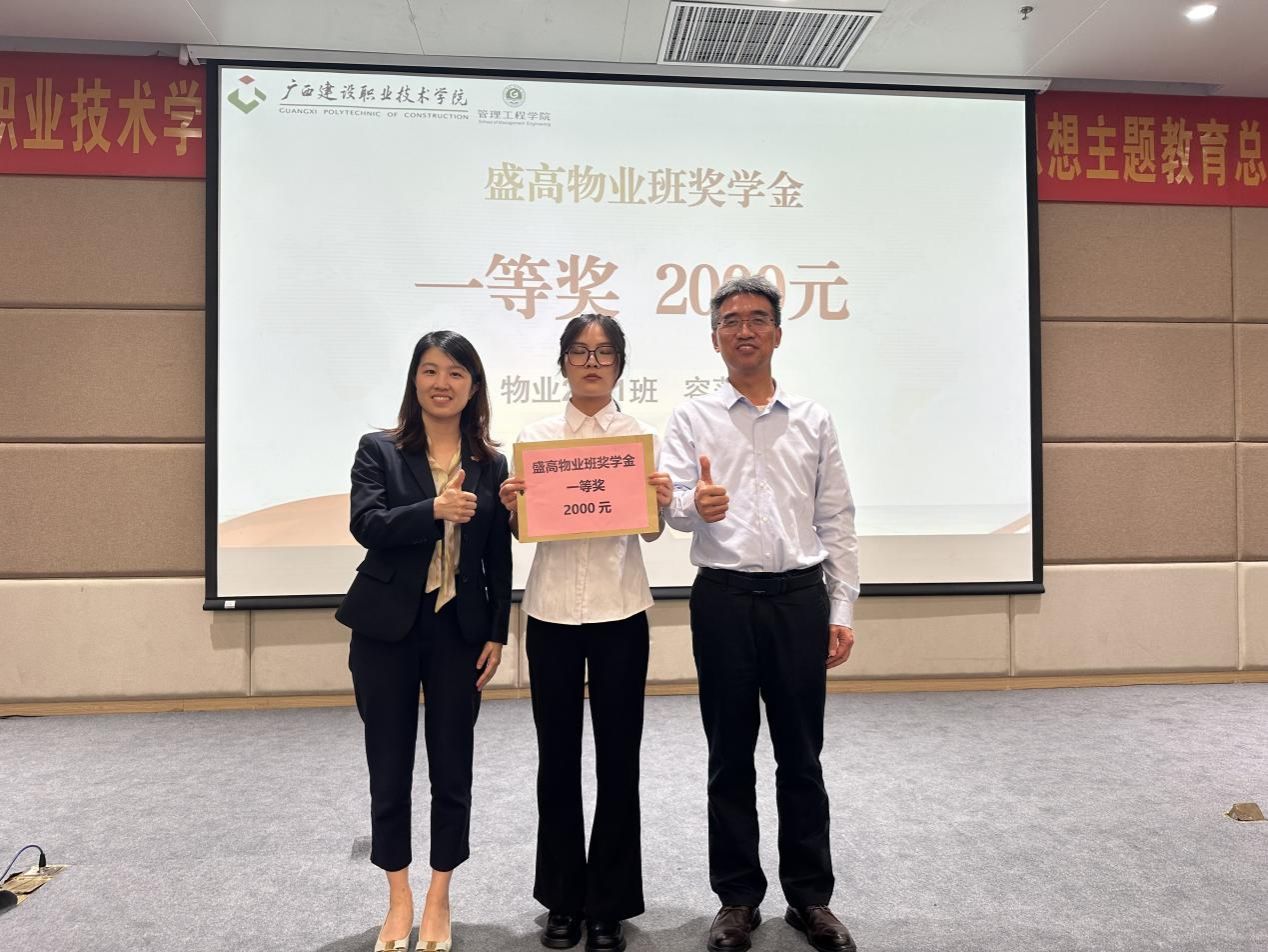 盛高物业南宁中心城市徐敏智总经理和罗辉副院长为学生颁奖