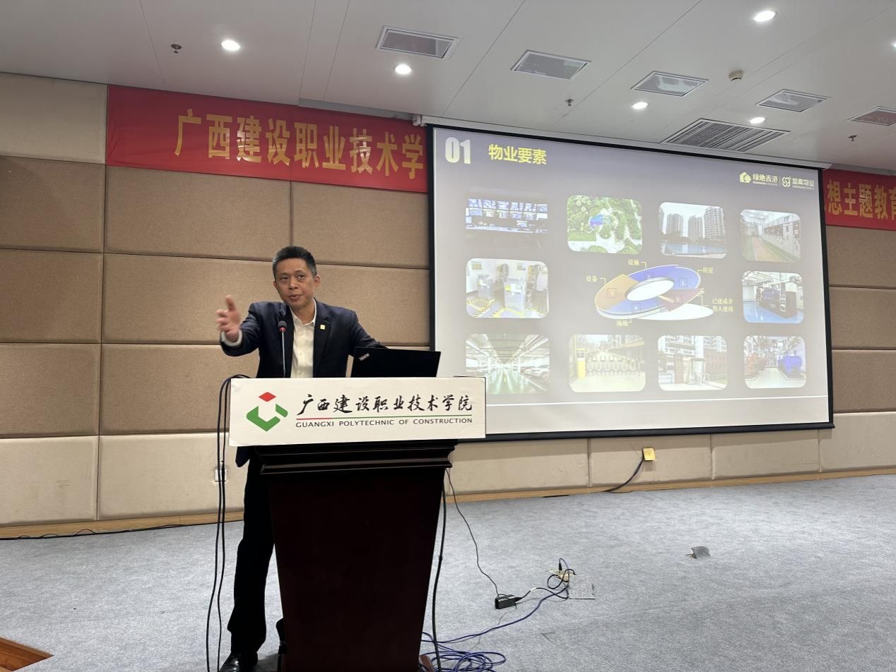 颁奖典礼后,盛高物业南宁中心城市徐敏智总经理以自己多年的物业管理从业经历为所有物业班的同学做了一堂生动的专题讲座,提出了很多有建设性的从业建议,鼓励同学们要努力学习理论知识,多学多看多练,培养独立思考的能力,做到事无巨细、热情饱满,保持先进、厚积薄发,争做时代物业人。