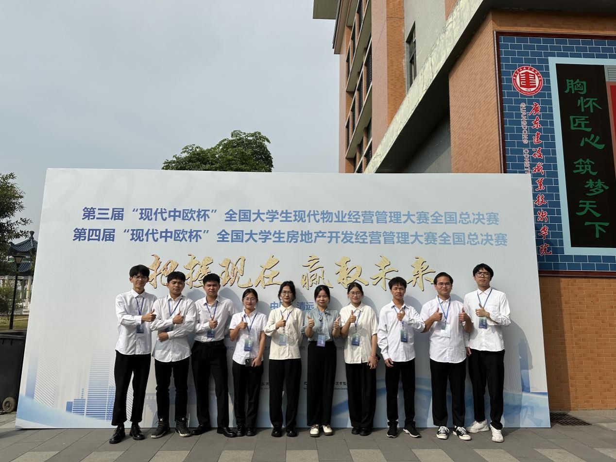 管理工程学院11月13日讯(图/文:张钰棠),2023年11月4日,由我院现代物业管理专业学子组成的三支参赛队伍、九名参赛选手参加了在广东建设职业技术学院清远校区举行的第三届“现代中欧杯”全国大学生现代物业经营管理大赛全国总决赛。本次大赛由中国建设教育协会指导、中国建设教育协会房地产专业委员会主办、广东建设职业技术学院和北京现代中欧软件开发有限公司联合承办。全国23所本科院校、27所高职院校,共109支队伍300多名选手参加了比赛。