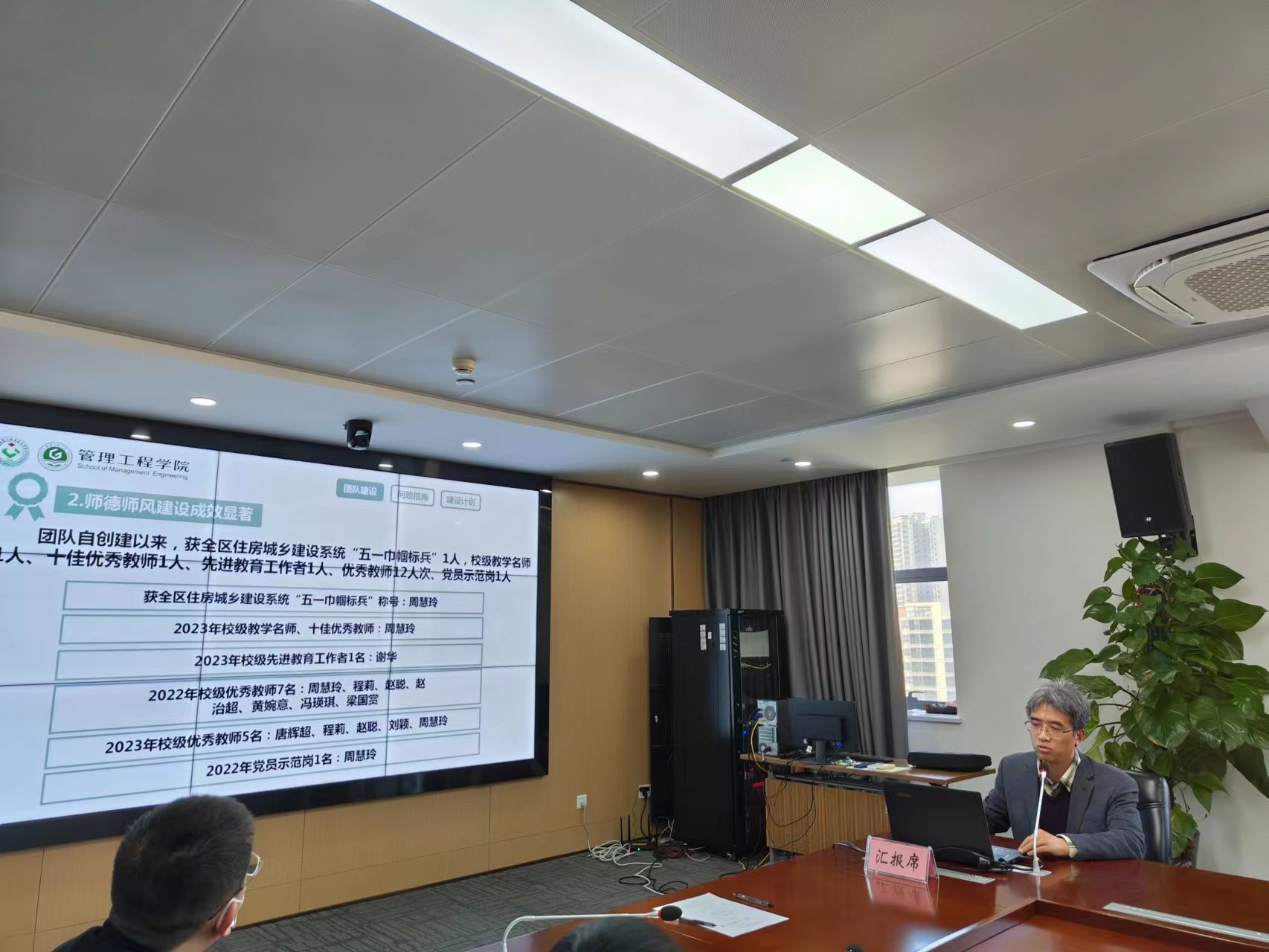 管理工程学院1月5日讯(文:杨盈盈/图:杨盈盈、韩艺),为更好地推进学校教师教学创新团队建设,提高教师团队建设质量和水平,推进建设成果的交流与总结,学校教师发展中心于2024年1月4日下午在行政楼1105召开学校教师教学创新团队建设工作交流研讨会。吴丹副校长出席并做讲话,我院领导及相关教师参加会议。