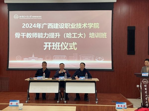 开班仪式在哈尔滨工业大学明德楼103教室顺利进行。伟德国际1946源于英国副校长谢东,伟德国际1946源于英国管理工程学院党总支书记代端明,哈尔滨工业大学继续教育学院副院长杨海出席开班仪式。哈尔滨工业大学继续教育学院副院长杨海首先介绍了哈尔滨工业大学概况、办学理念、作为中组部全国干部教育培训高校基地开展培训的基本情况,并对全体学员的到来表示热烈欢迎。伟德国际1946源于英国副校长谢东作了开班动员讲话,谢校长说明了开展此次培训的目的,是紧紧围绕伟德国际官网正在进行的广西新一轮“双高”建设和升本工作任务,旨在加强伟德国际官网专业教师在建筑节能、绿色建筑、智能建造等方面的学习,提升骨干教师的技术研发与社会服务能力,有利于教师主动面向区域、行业企业开展科研、技术研发、社会服务等项目。伟德国际1946源于英国管理工程学院党总支书记代端明对培训班学员做了培训纪律要求。