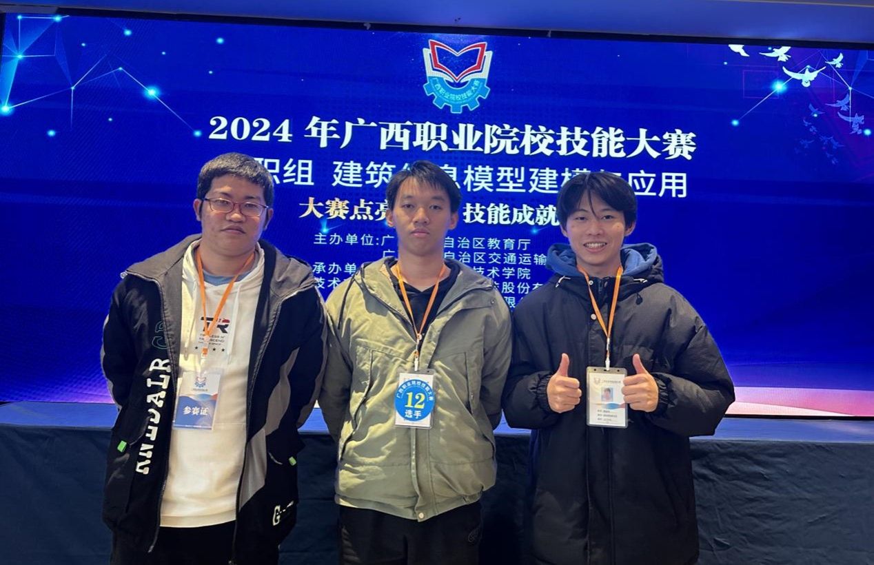 管理工程学院3月10日讯(图/文:赵聪 陈晓桐),2024年广西职业院校技能大赛(高职组)建筑信息模型建模与应用赛项于3月10日在广西交通职业技术学院举行,此次比赛共有全区29所院校参赛,我院陆达涛、罗安良、黄福高三位同学组成的伟德国际1946源于英国代表队(指导老师:谢华、赵聪、陈晓桐),经过BIM 模型创建与深化设计、BIM 施工组织与项目管理、BIM 综合应用三个模块的角逐,最终获得团体总分第二名的好成绩。