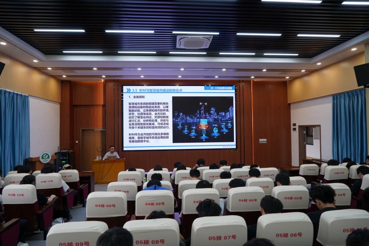 赵聪老师首先以上海虹桥枢纽工程建设为案例,向同学们讲解了当前城市化发展面临的挑战与机遇;并从BIM、CIM技术发展的现状入手,向同学们分析了当前数字基建建设的需求;同时,他结合真实装配式建筑工程项目案例向同学们详细讲解了BIM、CIM技术如何在工程建设中发挥作用。最后,赵聪老师结合人工智能技术的发展,对新型智慧城市建设提出了几点新思考。