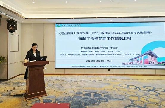 会上,文桂萍教授就《职业教育土木建筑类(专业)教师企业实践项目开发与实施指南》研制工作组前期工作情况进行汇报,并作为《指南》研制工作综合组专家,对编制组的问题进行解答。