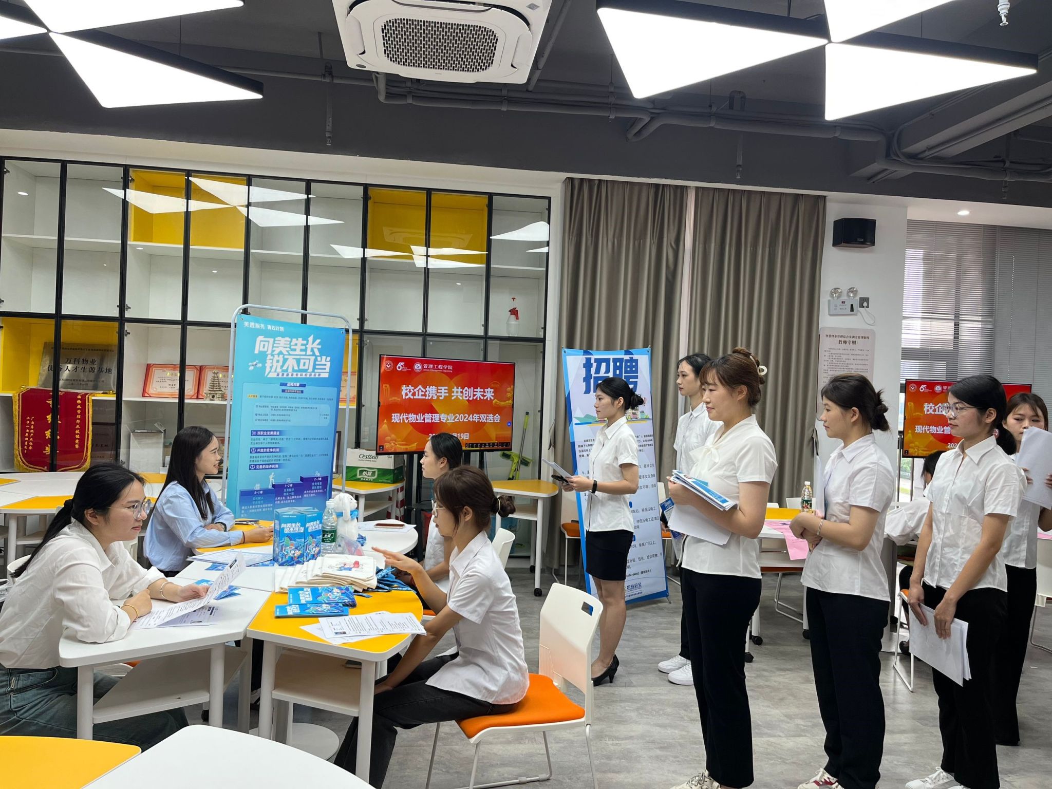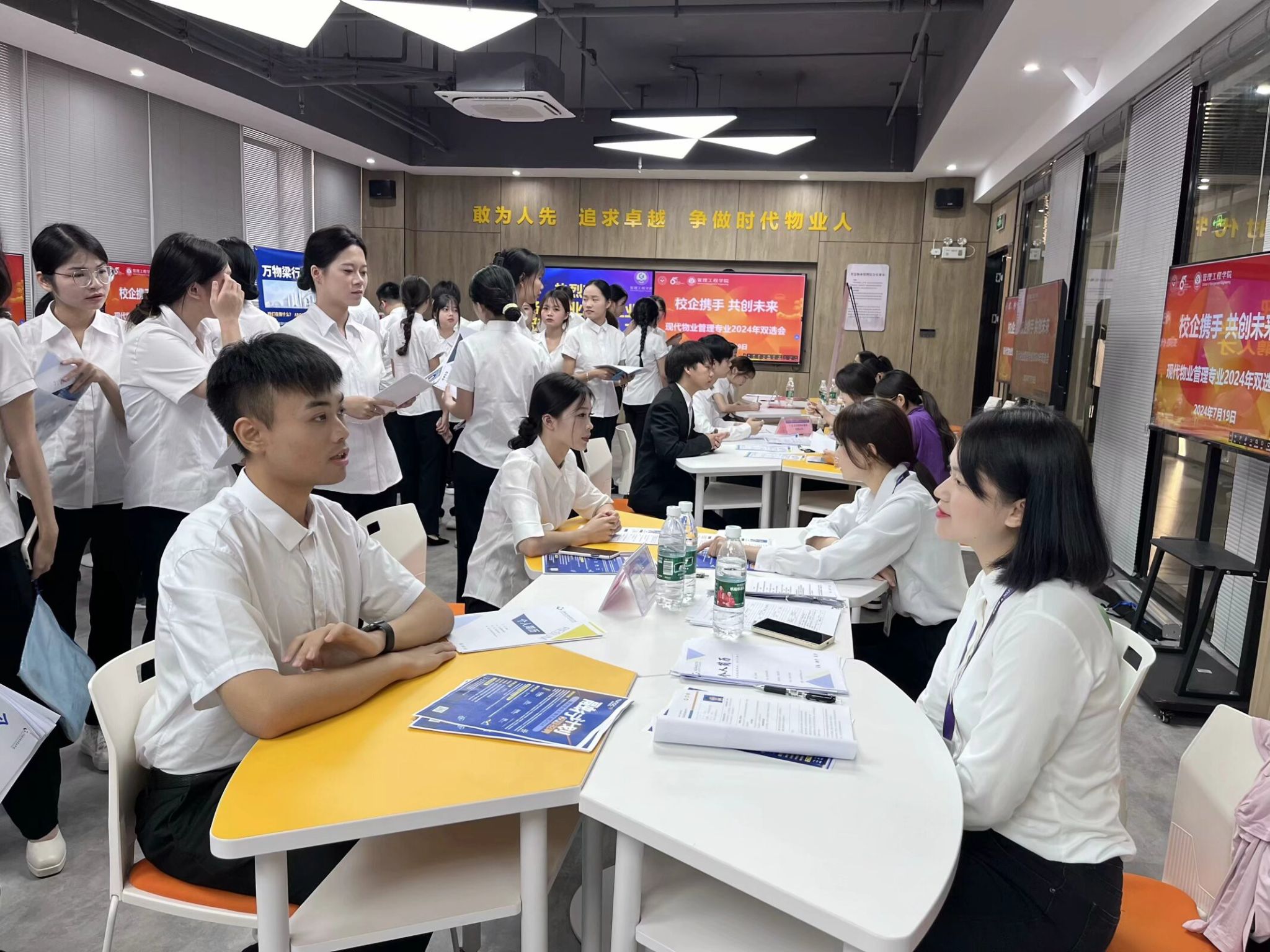 管理工程学院7月19日讯(图:黄娟 文:黄茜),2024年7月19日上午,我院2025届现代物业管理专业实习生招聘双选会在实训南楼五楼智慧物业管理实训中心举行。