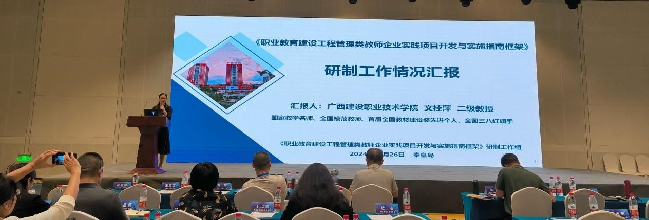 会上,河北城乡建设学校党委书记张福仁、中国建筑出版传媒有限公司教育教材分社副社长杜洁分别致欢迎词。17位来自不同学校和企业的专家进行了专题报告。其中,我院文桂萍教授就《职业教育建设工程管理类教师企业实践项目开发与实施指南框架》研制工作情况进行汇报。
