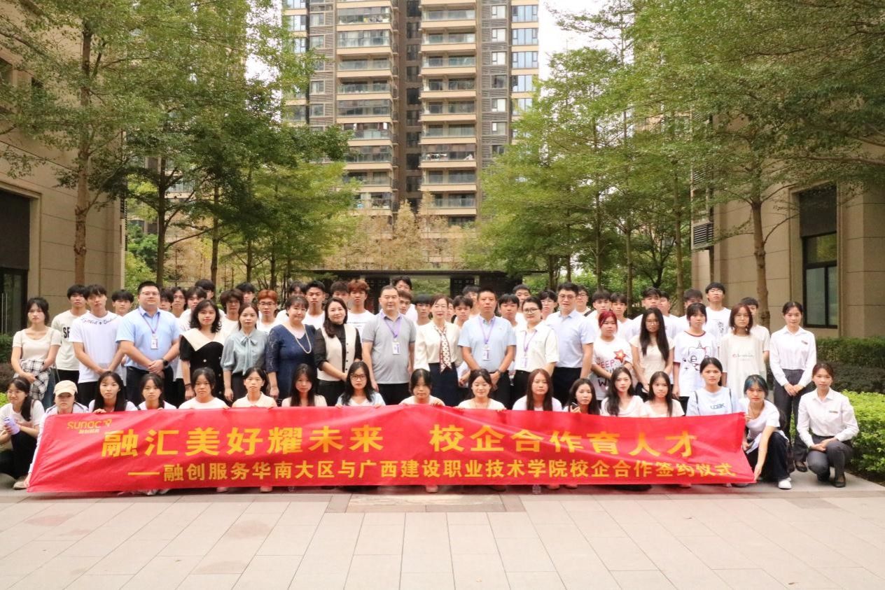 管理工程学院10月15日讯(文/图:董芸均),为深化产教融合,推动现代物业管理专业的高质量人才培养,进一步提升学生的实践技能与职业素养,管理工程学院与融创服务广西公司于2024年10月15日上午在融创服务广西公司平台会议室举行了签约授牌仪式。管理工程学院副院长罗辉、融创服务广西公司城市公司总经理孙中江、现代物业管理专业负责人黄娟、融创服务广西公司城市公司运营管理部负责人陆伟庆、综合管理部负责人郑妮、市场拓展部负责人崔卫国、现代物业管理专业团队专任教师以及物业2401班全体同学出席了此次授牌签约仪式。