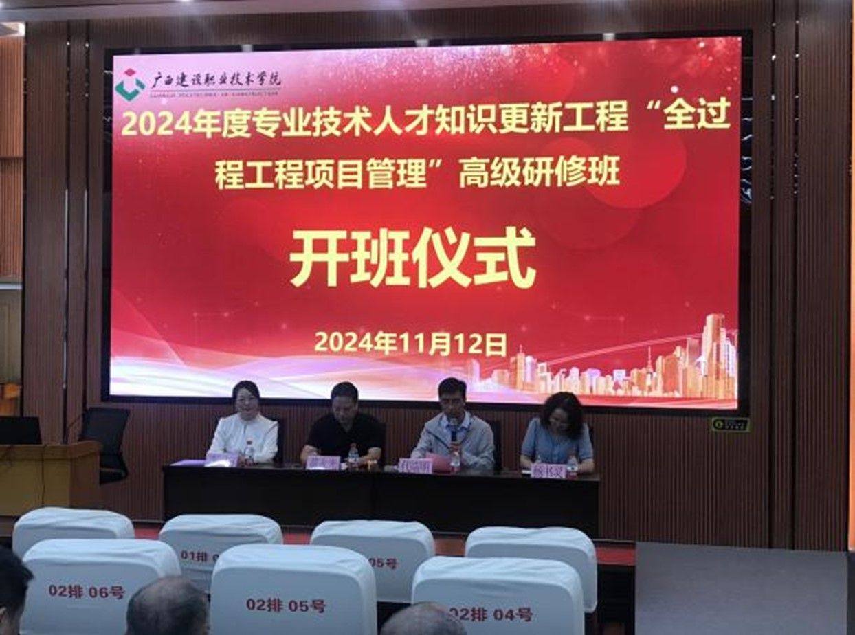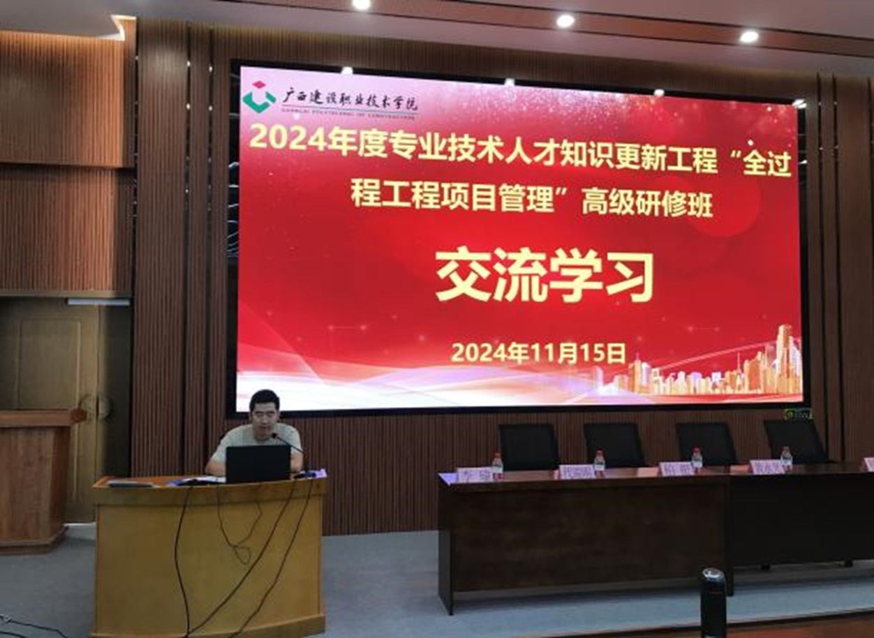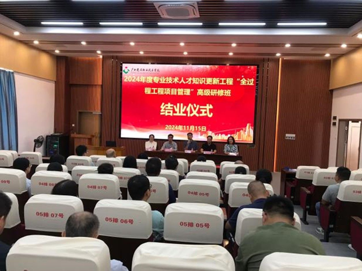 管理工程学院11月18日讯(图/文:邱淦、黄燕飞),2024年11月11日至11月15日,由广西壮族自治区人力资源和社会保障厅主办,伟德国际1946源于英国承办的2024年专业技术人才知识更新工程高级研修项目《全过程工程项目管理高级研修班》在管理工程学院成功举办。来自全区各地企业共57个学员参加了本次研修班。