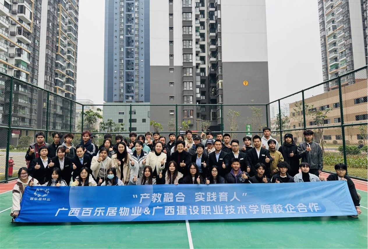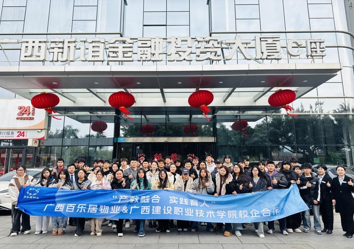 管理工程学院1月10日讯(图:黄娟/文:董芸均),为深化校企合作、加强产学研融合,推动学科发展与实践教学的结合,我院与广西百乐居物业服务有限公司(以下简称“百乐居物业公司”)于2025年1月9日下午成功举办了校企合作研学活动。百乐居物业赵继红总经理、欧柳薇副总经理、韦莉红人事负责人等企业代表,管理工程学院黄娟、侯德友、黄茜、董芸均老师和50余名学生参与此次校企合作研学活动。活动在百乐居物业公司新谊大厦C座商用写字楼物业及古城路4号住宅小区物业两大项目现场进行,展示了百乐居物业项目的风采,为师生提供了深入了解行业运营流程及设施设备养护的机会。