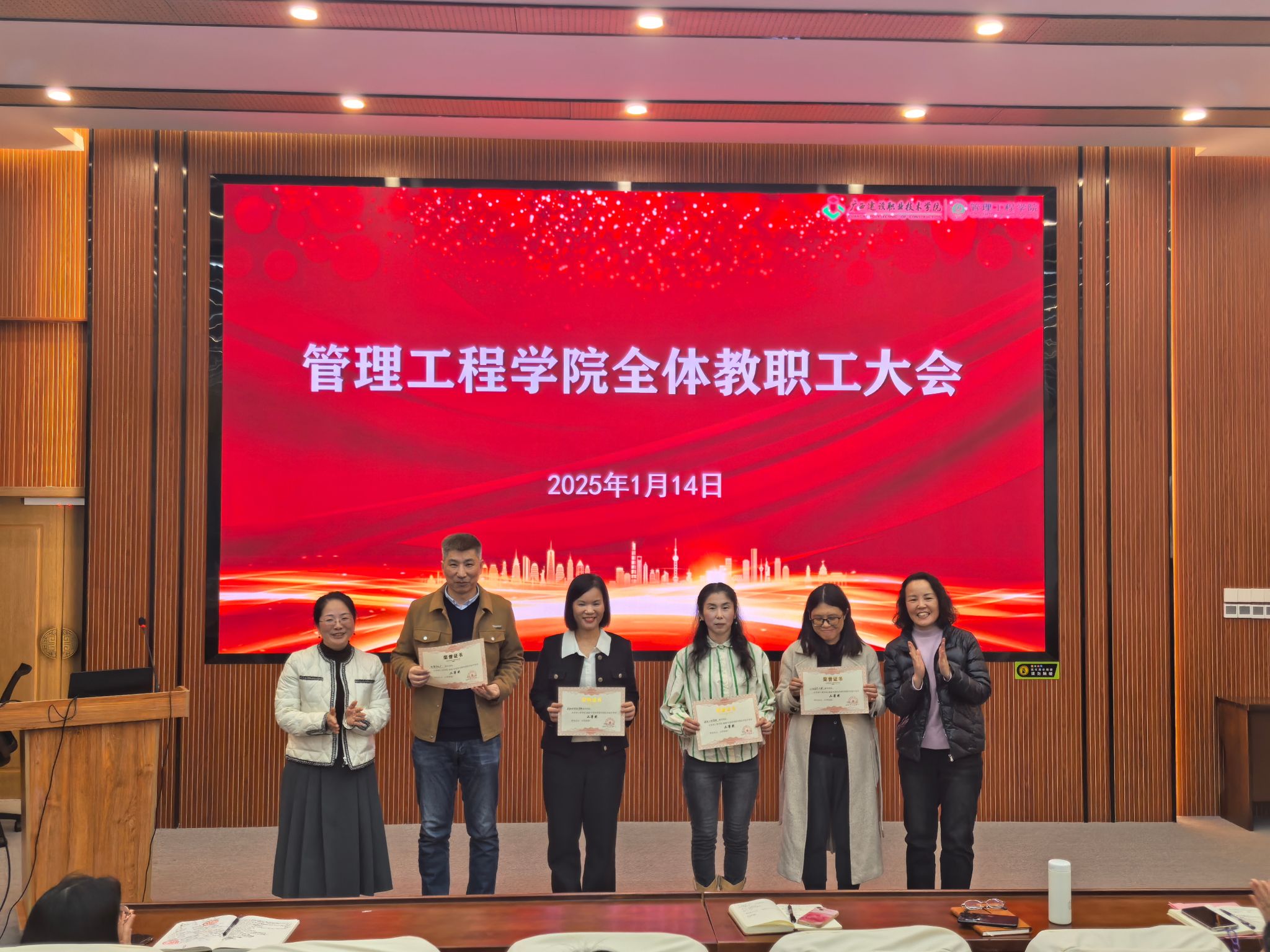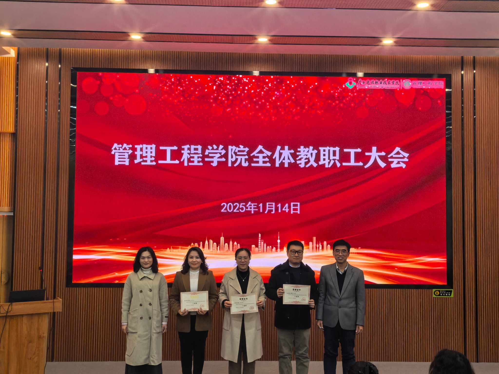 管理工程学院1月15日讯(图:余俊杰、文:吴彩竹),1月14日下午,管理工程学院在2教701报告厅召开教学团队2024年度总结汇报会,管理工程学院全体教职工参加了会议,会议由学院党总支书记代端明主持。
