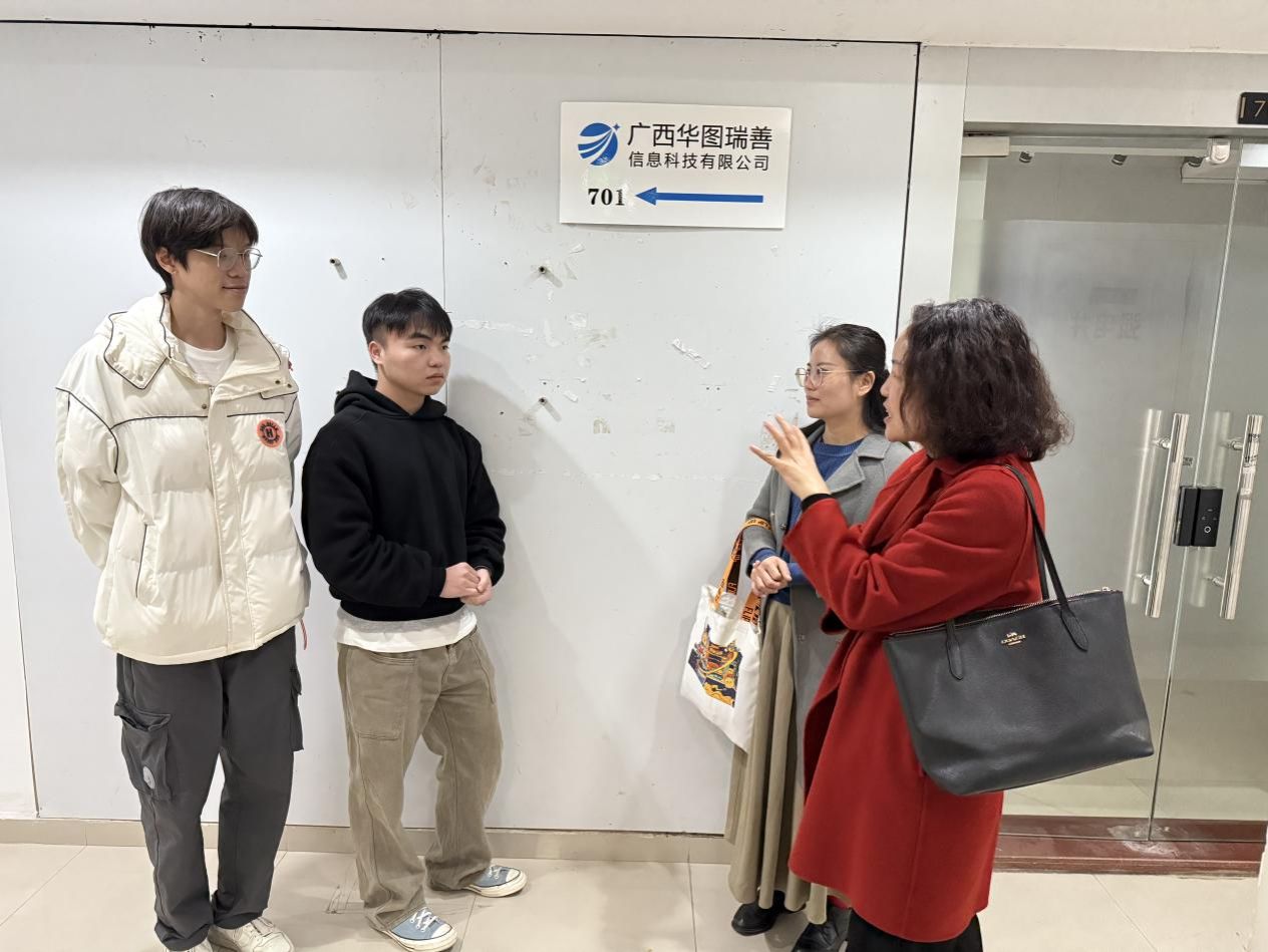 管理工程学院1月23日讯(图/文:黄晨)为深入了解用人单位需求,帮助毕业生解决求职就业中的急难愁盼问题,全力做好2025届毕业生就业工作,近日,管理工程学院副院长杨书灵带队走访了广西华进项目管理有限公司、广西华图瑞善信息科技有限公司、广西北投兴东置业有限公司和南宁豫桂建筑工程有限公司等四家企业,检查学生毕业实习情况,为毕业生提供贴心暖心的就业指导服务。