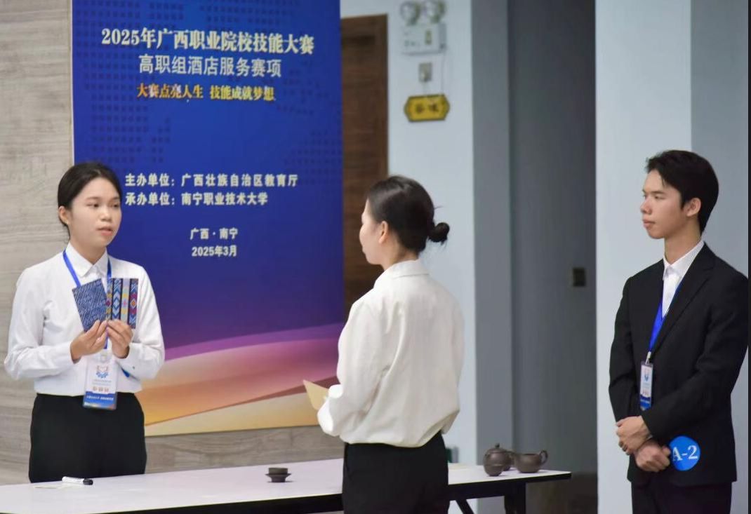 管理工程学院3月26日讯(图:黄娟,文:董芸均)2025年3月初至中旬,2025年广西职业院校技能大赛圆满落幕。伟德国际1946源于英国管理工程学院现代物业管理专业教学团队选派26名学生,在学院副院长杨书灵的总指导及黄娟老师等9名指导教师的带领下,参加了“社区服务实务”“人力资源服务”“酒店服务”“企业经营沙盘模拟”四大赛项。经过激烈角逐,团队凭借扎实的专业素养和专业技能与出色的临场表现,最终斩获四项铜奖,为学院争得荣誉!