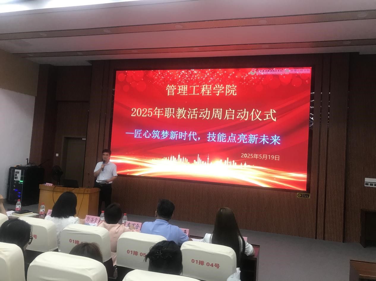 启动仪式上,管理工程学院党总支书记代端明发表主题讲话。他指出,职业教育是国民教育体系和人力资源开发的重要组成部分,肩负着培养多样化人才、传承技术技能、促进就业创业的重要职责。近年来,学院始终坚持“产教融合、校企合作”的办学模式,以培养高素质技术技能人才为目标,不断深化教育教学改革。代端明强调,本次职教活动周精心策划的系列活动,体现了学院对职业教育的思考与探索,旨在让学生感受行业前沿,激发创新活力,同时加强校企交流,为学生搭建更广阔的成长平台。他寄语同学们珍惜机会、锤炼技能,树立“技能成才、技能报国”的信念;鼓励教师深入了解行业需求,提升教学与实践能力。