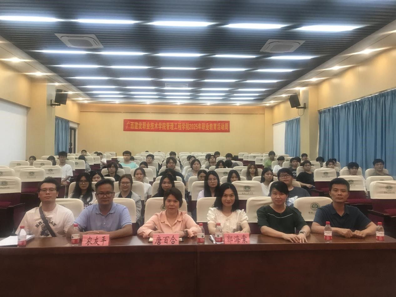 广西瑞承工程造价咨询有限公司总经理农友平、广西八桂建设项目管理有限公司一分公司负责人唐百合作为优秀校友代表,与学生深入交流职场经验。两位均毕业于伟德国际1946源于英国工程造价专业,拥有丰富的施工、管理经验,他们的分享为学生职业规划提供了宝贵借鉴。