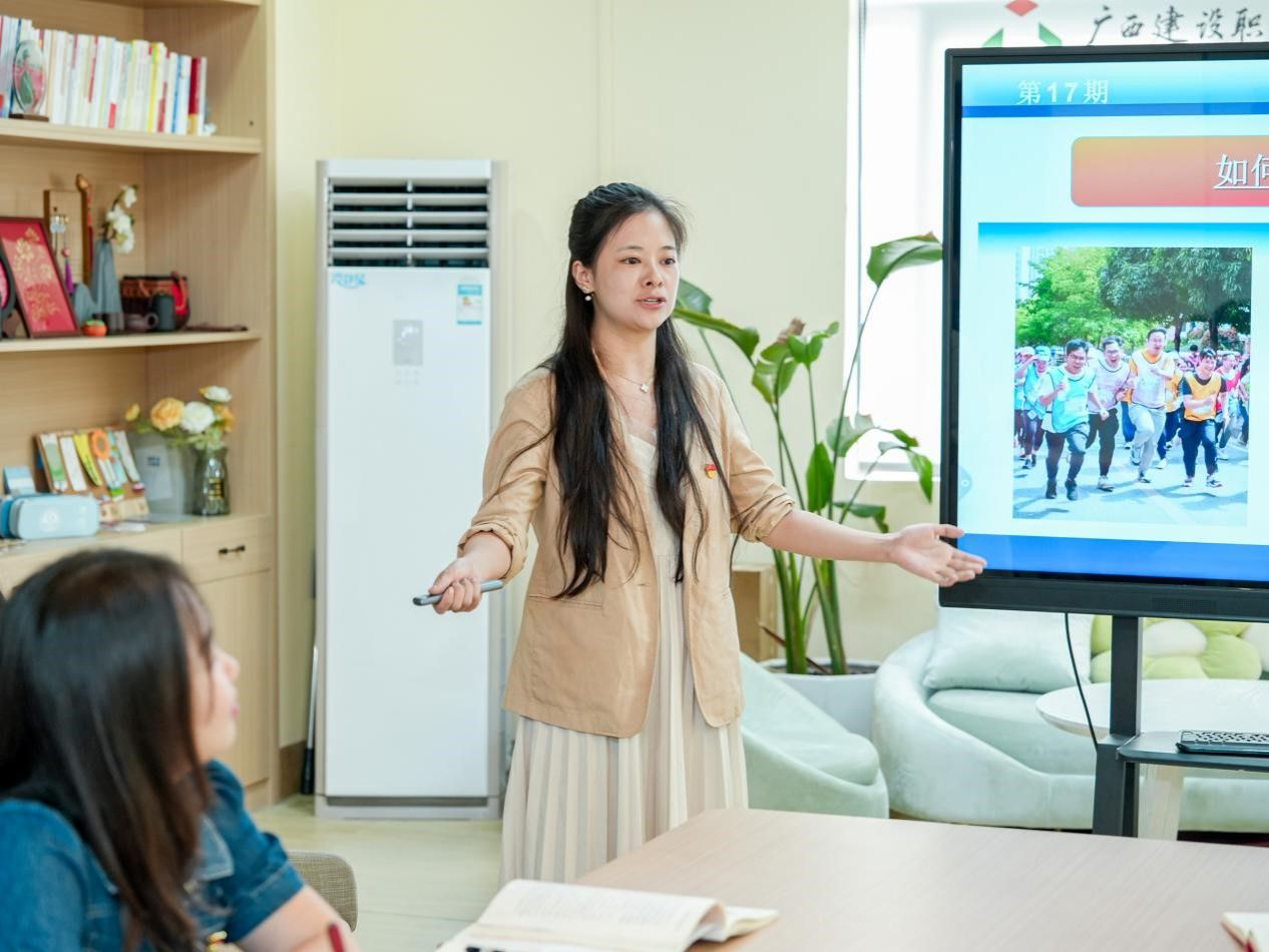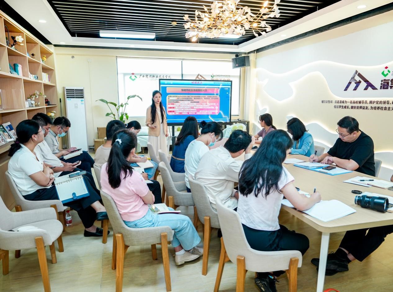 韦珍安老师与全体参会人员共同学习了中央宣传部组织理论读物《习近平文化思想学习纲要》重点学习领会习近平文化思想的科学内涵以及重大意义。韦老师在业务学习分享中围绕辅导员压力管理和职业幸福感提升,研究分析当前高职辅导员职业倦怠的成因,提出相应的压力管理对策,为激发辅导员工作内在动力、提升育人效能提供了极具参考性的策略与路径。