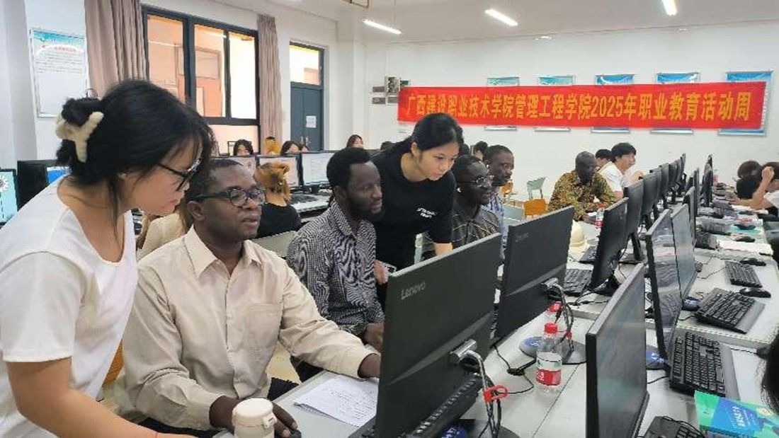 3.职业启蒙与国际交流:中学生职业体验活动中,85%参与者表示“对职业教育有了新认识”;冈比亚访学团实地考察广西建工集团建筑产业投资有限公司等企业,国际合作案例被纳入学校国际化办学典型经验。