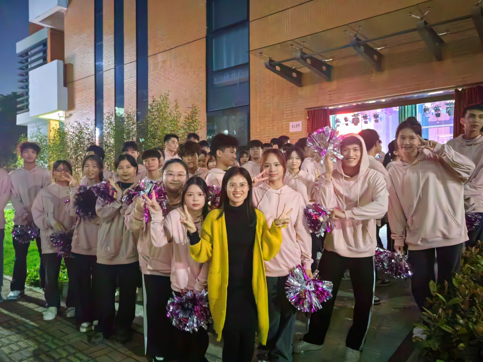 赖小华和物业2301班同学排练啦啦操参加比赛