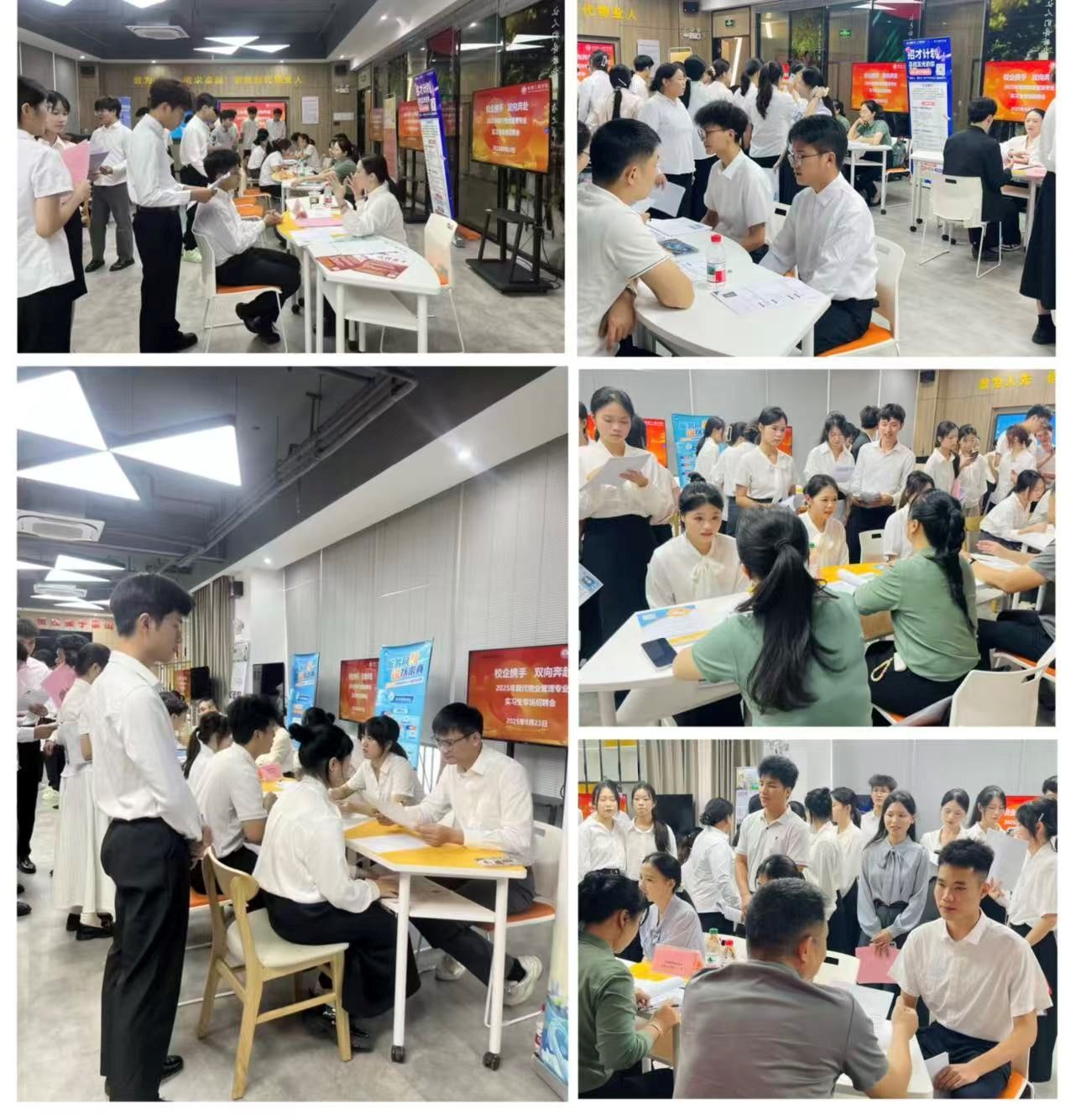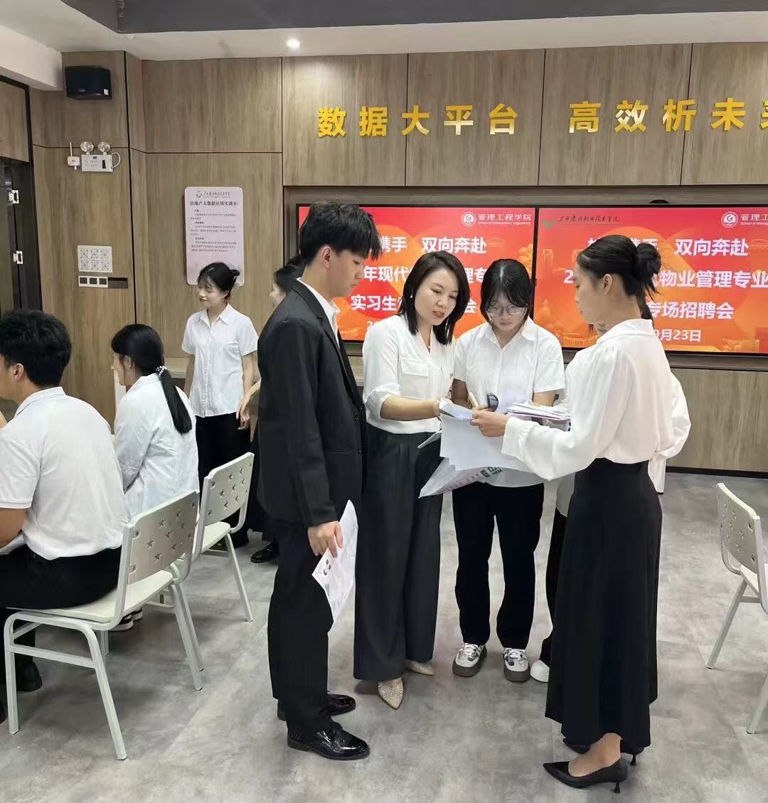 此次实习就业双选会的亮点在于精准对接专业需求,确保了招聘质量。现代物业管理专业李同学表示,“目前有安防技术和物业客服管理两类岗位的初步意向,期待通过实习将课堂知识转化为实践能力。”招聘现场吸引了不少非物业专业学生,房地产专业张同学表示:“听说物业管理行业智能化转型需求大,想来试试跨专业发展的可能。”活动上,现代物业管理专业负责人黄娟老师和团队老师们全程为学生提供简历优化、岗位匹配建议等指导。