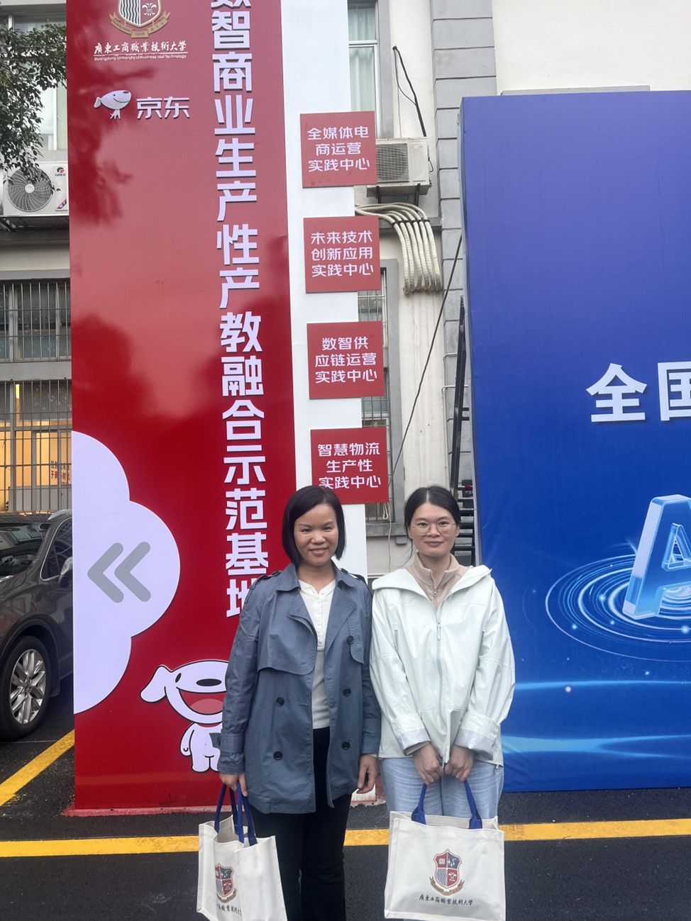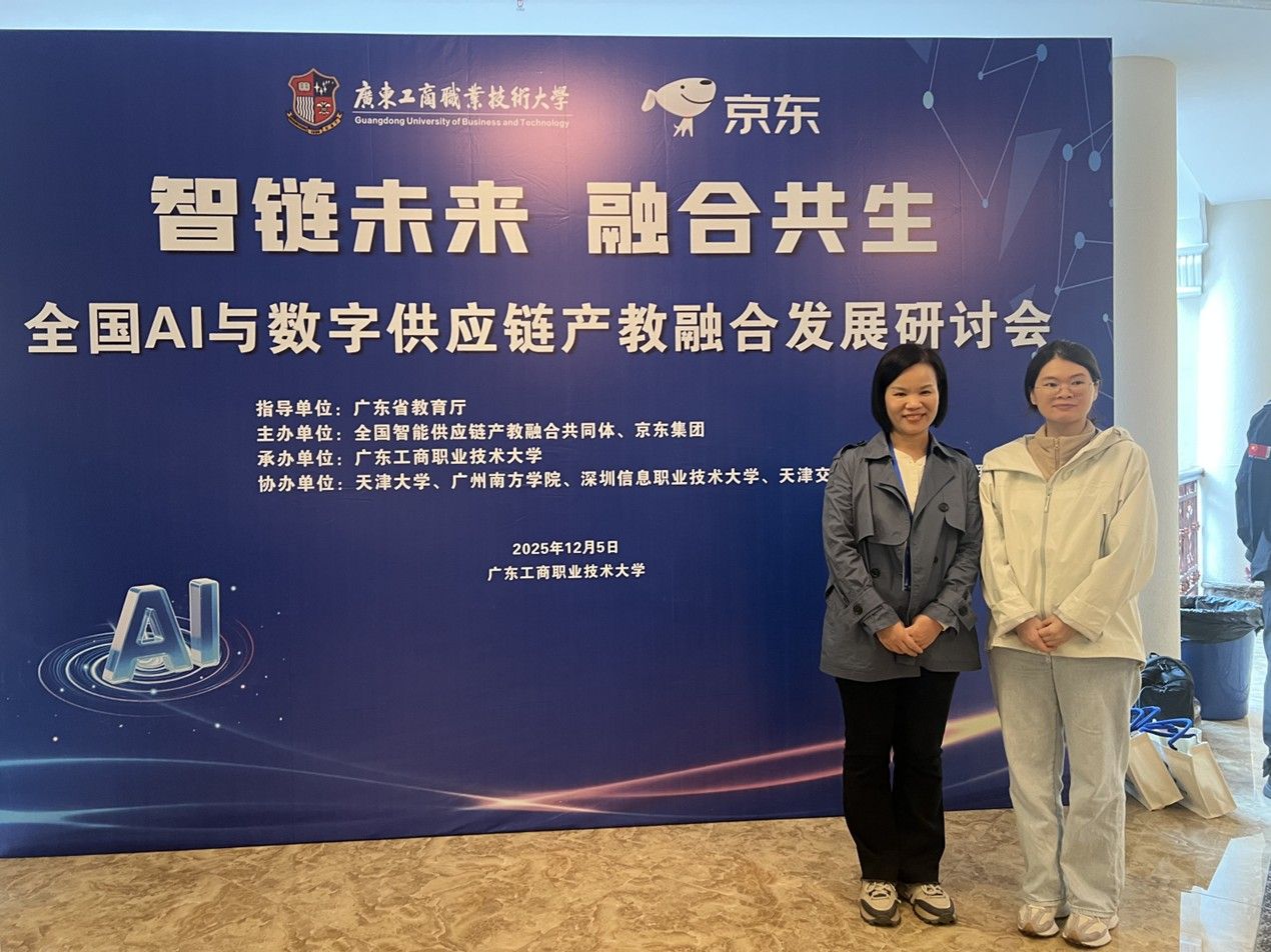 管理工程学院128日讯(图/黄婉意),为紧跟国家“人工智能+”战略与产教融合发展方向,精准把握智能供应链领域人才培养新需求,125日,我院应邀参加了在广东工商职业技术大学举办的“AI与数字供应链产教融合发展研讨会”。此次会议由广东省教育厅指导,全国智能供应链产教融合共同体与京东集团主办,汇聚教育界、产业界各界代表,为职业教育协同发展搭建了高效交流平台。我院高度重视此次研讨会,派出骨干教师黄婉意、李红参会。