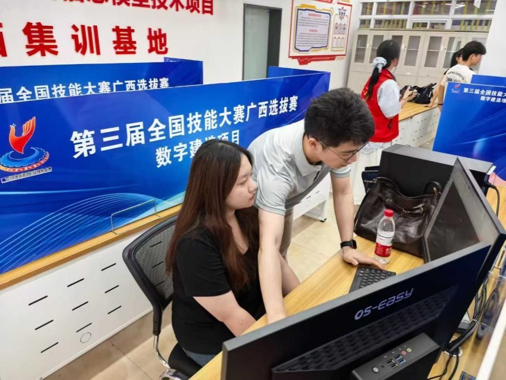 这份对完美的执念,在两年后的2024年迎来了爆发。在2024年全区建设业行业职业技能竞赛中,余俊杰老师再次参赛。这一次,他没有给对手留机会,凭借行云流水的建模速度和极少失误的系统操作,一举夺得“建筑信息模型第一名”。从第二到第一,排名的微小变化,背后是他无数个夜晚在实训室里与软件死磕的坚持,是他对“匠心”二字最朴素的注解。