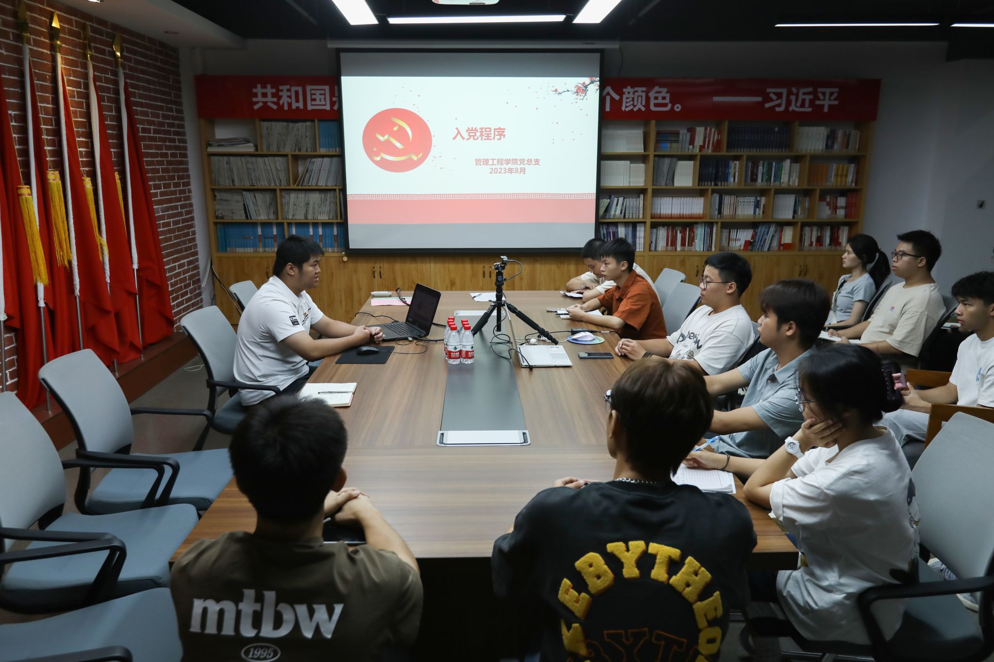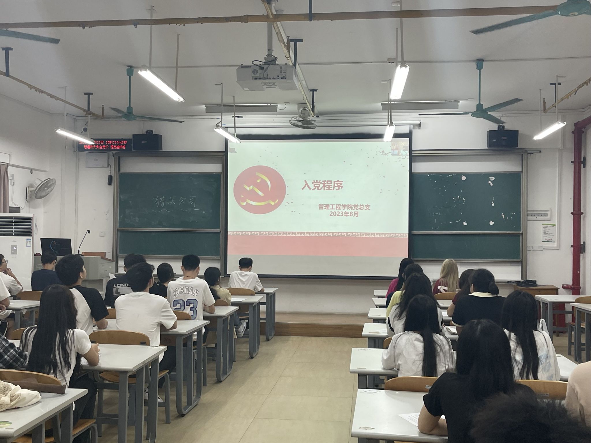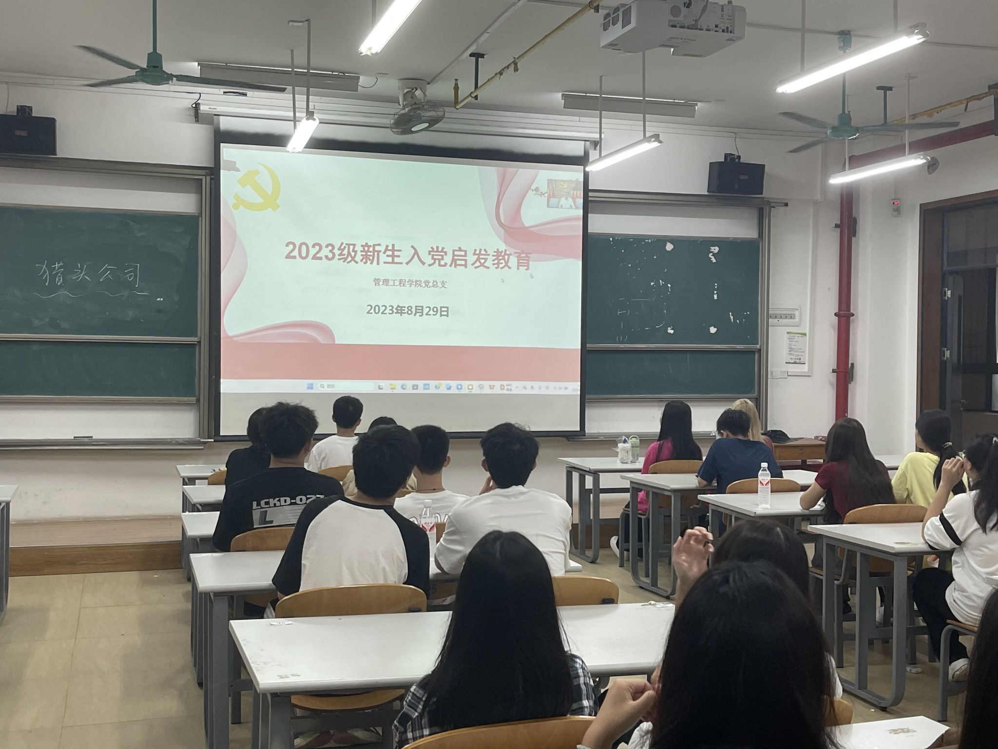 为切实做好2023级新生入党启发教育工作,帮助新生端正入党动机,积极引导新生争做新时代有理想、有担当的好青年,做到早启蒙、早教育、早衔接和早培养,8月29日,管理工程学院党总支开展了新生入党启发教育,本次启发教育采用“线上+线下”方式进行,主会场设在2教党员活动室,在红船党建工作室、2教等17个教室设分会场。