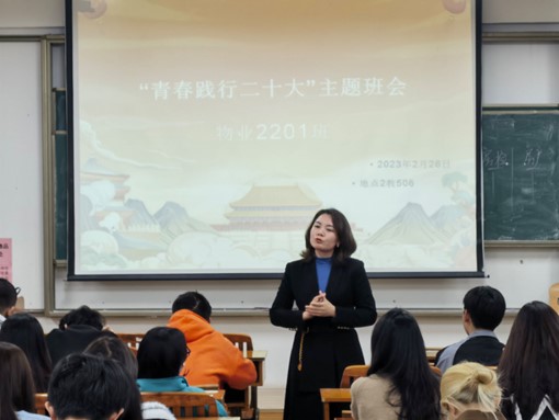 黄娟同志在给学生讲“青春践行二十大”主题班会