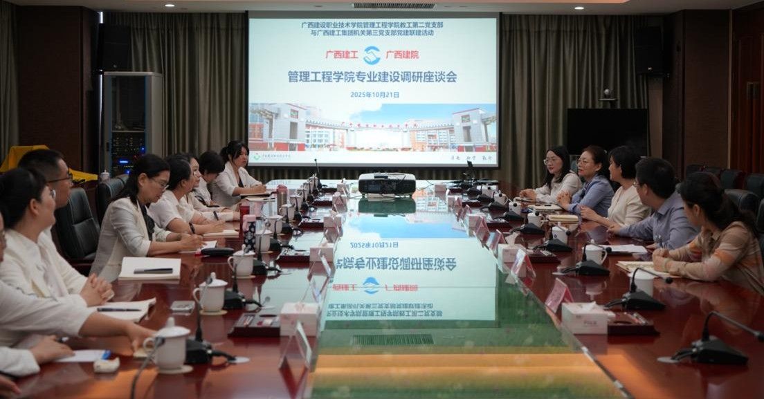 管理工程学院1023日讯(文:李柳/图:邱淦)为深化产教融合,精准对接行业前沿需求,优化专业建设及人才培养方案,强化校企协同育人成效,1021日,管理工程学院副院长李瑜与国家教学名师文桂萍教授联合率领学院骨干教师一行11人,赴广西建工集团有限责任公司开展专业建设与人才培养专题研讨。广西建工集团高度重视,副总经济师、运营管理部总经理骆春燕率企业高管与行业专家共7人出席会议,并进行了深入研讨。