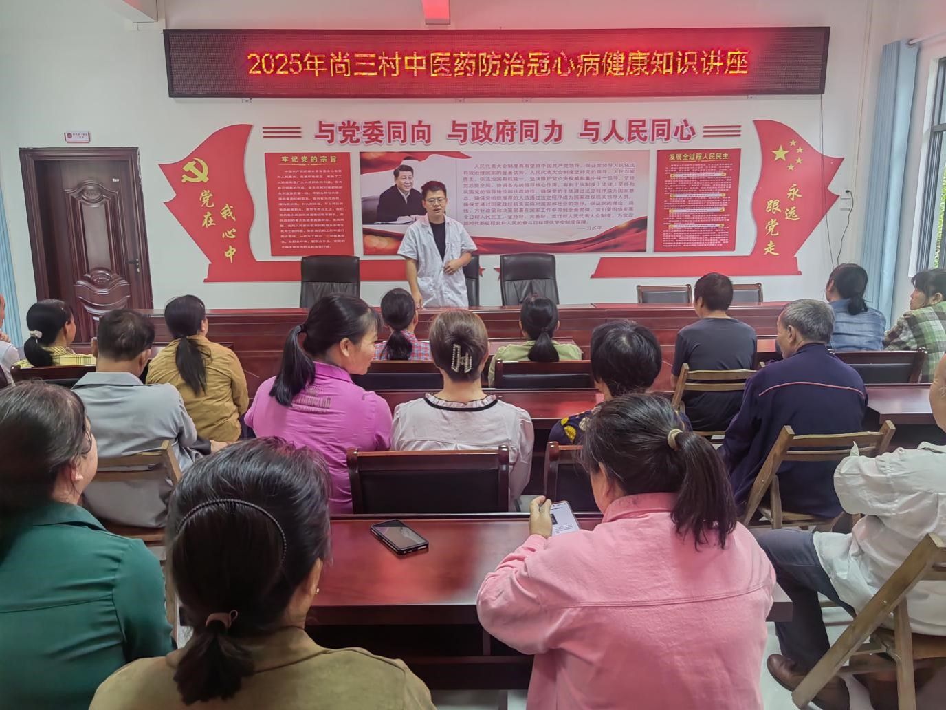 活动核心环节——科普讲座率先登场。首场由村医以当地方言开讲,围绕《健康生活,预防先行——农村常见健康问题科普》主题,结合村里常见案例,用通俗易懂的语言讲解冠心病防治知识,强调“低盐、低脂、低糖”的饮食原则,以帮助控制体重、血压和血脂,从源头预防冠心病。