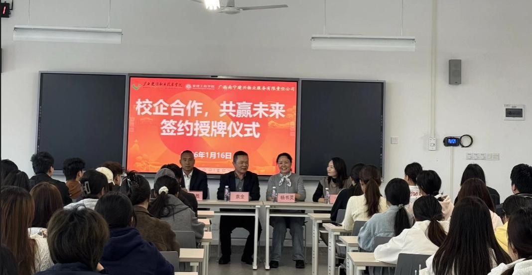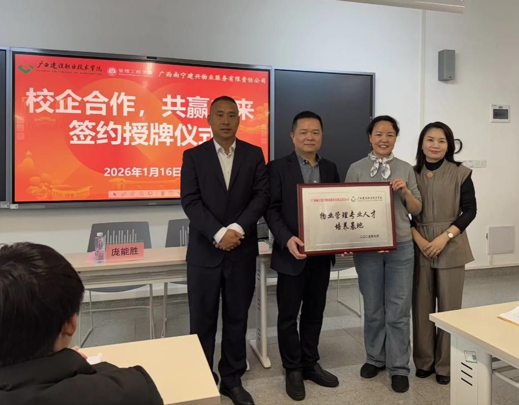 此次签约授牌仪式的成功举行,标志着管理工程学院与建兴物业公司的合作迈入实质性阶段。未来,双方将以此次合作为契机,持续深化产教融合、科教融汇,探索校企协同育人新模式,为广西物业管理行业转型升级输送更多高素质技术技能人才,助力区域经济社会高质量发展。