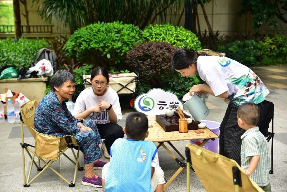 当日上午,云华公益团队悉心布置了活动场地,一场关于六堡茶的品鉴与交流的盛会便拉开了序幕。团队热心地邀请老年居民来品鉴六堡茶,同时与活动成员、茶艺师和其他居民交流心得。随着茶艺师的引领,大家不仅品尝了多款优质的六堡茶,更深入了解了其背后的深厚文化与历史。云华公益团队的茶艺师们凭借精湛的泡茶技艺与丰富的茶叶知识,不仅让居民们称赞连连,也带来了一场深入的茶道体验,让居民们亲自动手泡茶,感受茶道的魅力。在品茶的同时,大家还试吃了项目团队所带来的美味的果干,为品茶增添了一份甜蜜的惊喜。