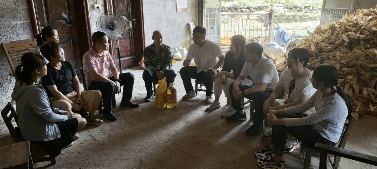 广西建院7月17日讯(市政与交通学院 文/何炎 图/杨彩艺)为落实“四个不摘”,扎实推进“五大振兴”,切实抓好巩固拓展脱贫攻坚成果同乡村振兴有效衔接工作,7月17日,市政与交通学院党总支联同广西城建咨询设计有限公司(以下简称“城建咨询公司”)第五党支部党员代表赴都安瑶族自治县澄江镇自成村开展共建座谈会,并走访慰问低收入脱贫户和驻村第一书记。