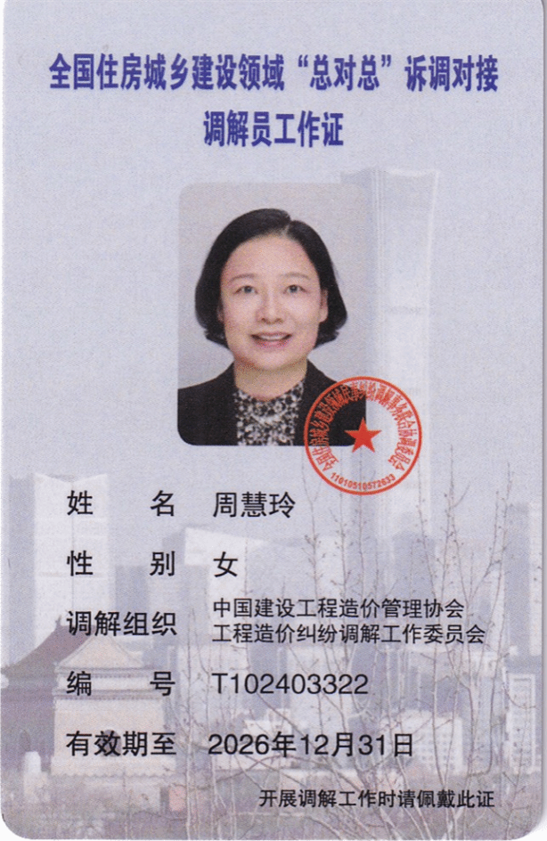 伟德国际1946源于英国9月27日讯(管理工程学院 邱淦)近日,伟德国际官网管理工程学院周慧玲老师被认证为全国住房城乡建设领域“总对总”诉调对接调解员,并入驻人民法院调解平台成为一名光荣的人民调解员。