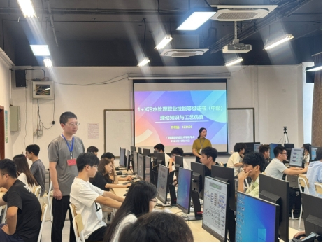 “1+X”污水处理职业技能等级证书考试,包括理论知识、工艺仿真、水质检测、受限空间安全作业与心肺复苏应急救援五个考核部分。此次考试不仅是一次技能认证,更是对给排水工程技术专业学生毕业就业竞争力的有力提升,不仅可以显著增强给排水工程技术专业学生的专业技能,还可以从数字化运维管理角度为学生们注入了创新元素,进一步拓宽了他们的职业发展路径。
