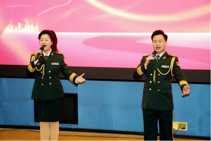 仪式上,黄敏、韦江宁两位老师以一曲《军人本色》表达了对军人的赞美之情。动人的歌声、激昂的旋律,把军人的忠诚与担当演绎得淋漓尽致,唤起了在场师生的家国情怀,更引起退役复学生们的强烈共鸣,现场气氛被推向高潮。