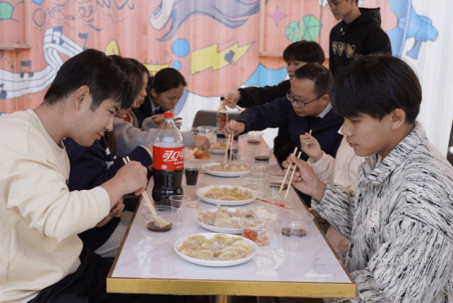 师生一起包饺子、唠家常