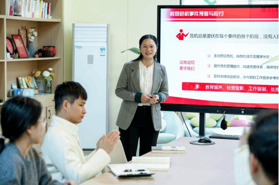 宁钰球老师和全体参会人员共同学习了自治区党委十二届八次全会精神。她结合所负责的学生管理工作,分享了所经手处理的校园危机事件案例,归纳总结了校园危机事件预警与应对的有效路径,即坚持“事前评估、事中把控、事后反思”三向合力,筑牢校园安全防护网。