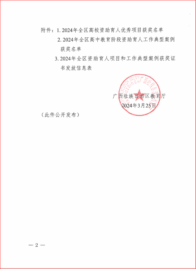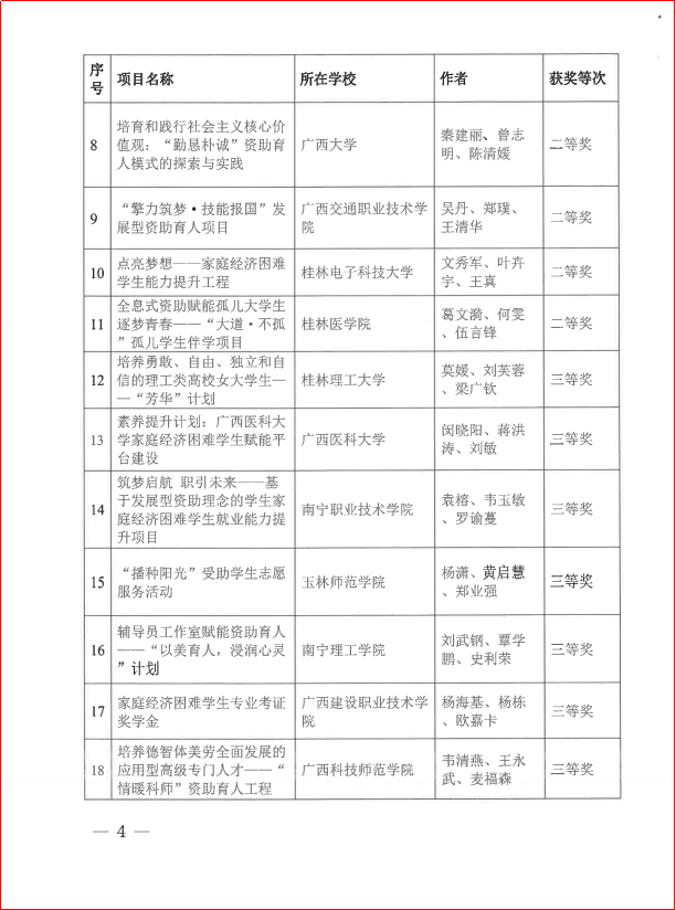 伟德国际1946源于英国4月7日讯(党委学生工作部 欧嘉卡 杨栋)近日,自治区教育厅印发《关于公布2024年全区资助育人项目和工作典型案例评选活动获奖名单的通知》(桂教资助〔2024〕4号),在全区高校范围内共评选出资助育人优秀项目20项。伟德国际官网申报的项目《家庭经济困难学生专业考证奖学金》荣获“2024年全区高校资助育人优秀项目”三等奖。