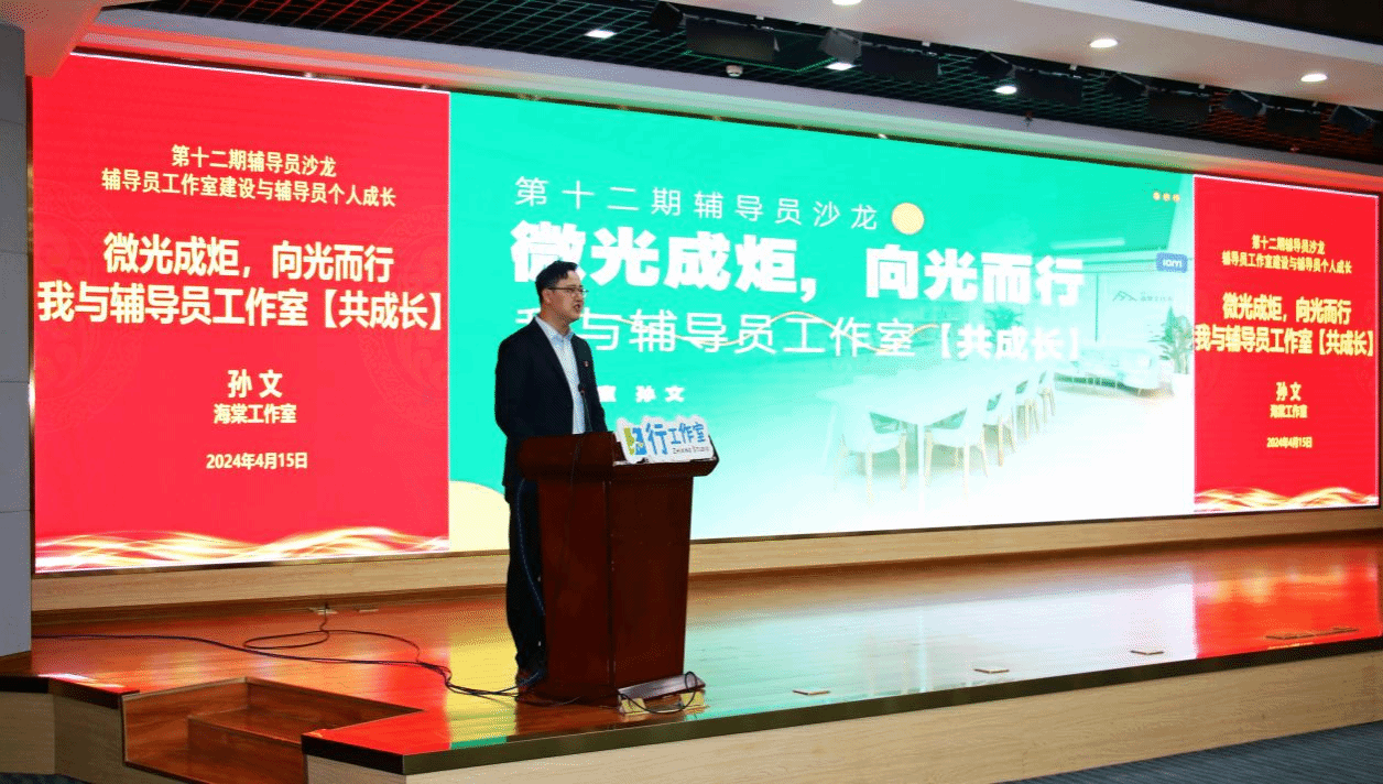 学校9个辅导员工作室成员代表依次上台,围绕“辅导员工作室建设与辅导员个人成长”主题,结合工作室的定位特色和个人成长经验,分享自己在工作室建设、育人管理、职业生涯等方面的收获,共话与工作室同进步、共成长的点点滴滴。