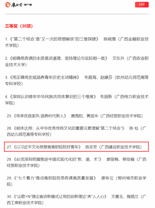 据悉,为深化习近平新时代中国特色社会主义思想和习近平总书记关于广西工作论述的重要要求的理论研究和宣传阐释,进一步推动党的创新理论高质量传播和“飞入寻常百姓家”,2024年4月至6月,广西日报理论评论部和广西高职高专院校思想政治理论课建设联盟面向全区高职高专院校思政课教师征集“党的创新理论大众化通俗化”优秀理论文章。按照活动要求,伟德国际官网加强工作组织、广泛发动全校教职工尤其是思政课教师积极参与、踊跃投稿,取得优异成绩。