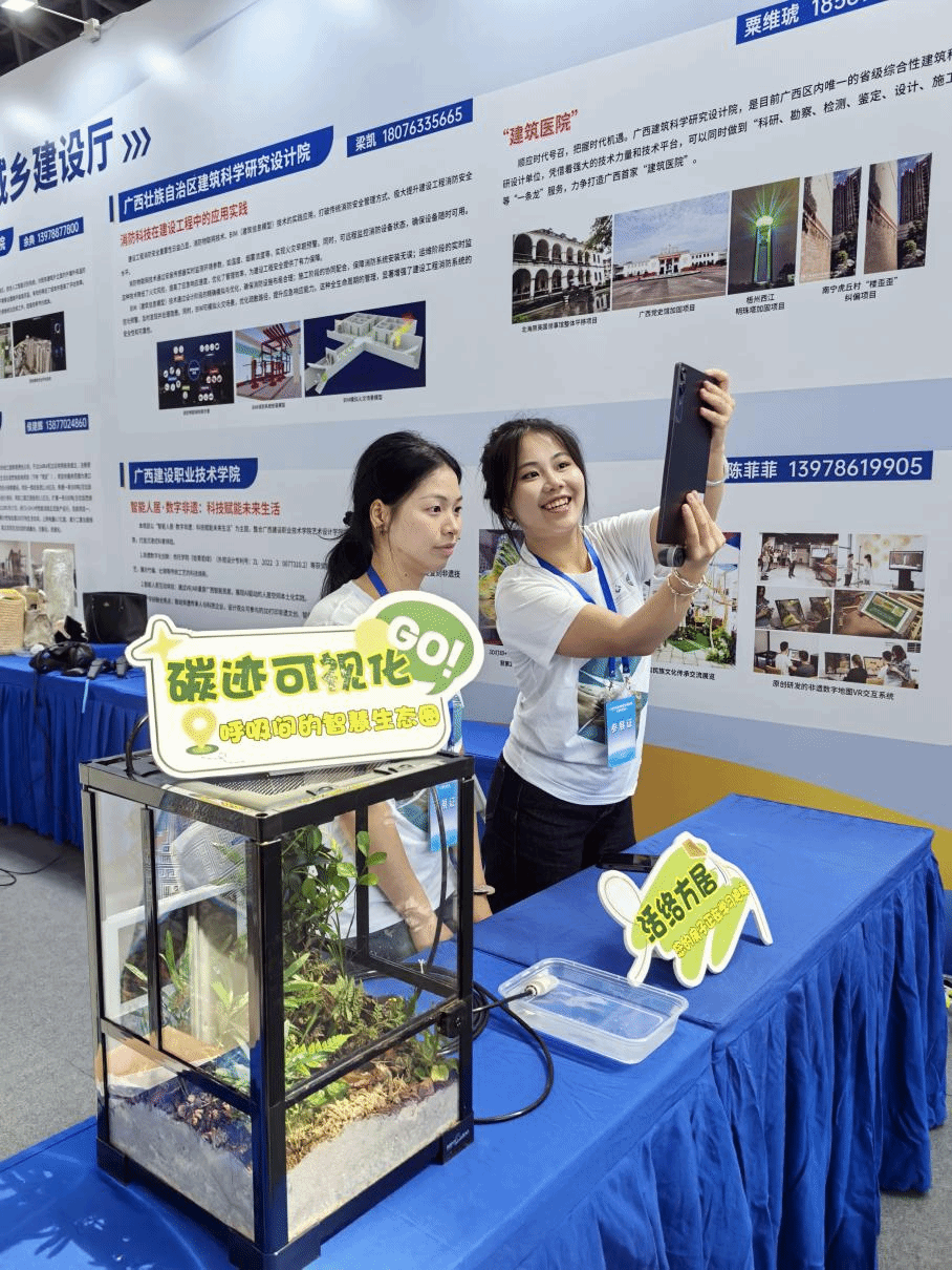 伟德国际官网本次参展项目,紧密围绕服务地方文化与科技融合发展的需求,立体呈现了学院在非遗数字化保护传承、元宇宙概念应用、生成式AI人居健康开发及零碳科技等前沿方向的研究探索与实践成果。项目以沉浸式科普体验为核心,通过四个主题与观众开展科普互动:活络方居:您的房子正在学习把脉——展示AI如何理解并优化居住健康;碳迹可视化:呼吸间的智慧生态圈——呈现零碳科技与智能家居的结合;AR元宇宙:推开壮乡民居的任意门——通过AR技术让观众瞬间“进入”传统壮乡生活空间;非遗方程式:传统³×科技ⁿ=∞可能——生动表达传统技艺与科技创新融合产生的巨大能量与无限可能。