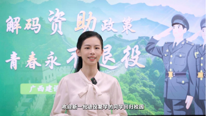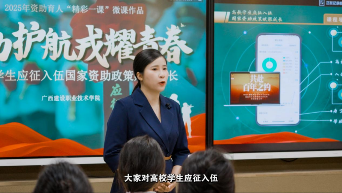 何梓溦老师主讲的《解码资助政策 青春永不退役》,聚焦退役复学大学生群体,采用情境教学法引发情感共鸣和情感认同,系统解读政策文件和政策背后的深意,突出政策解读与情感教育融合、个人经历与国家战略关联、理论认知与行动转化结合。通过课程教学,让学生能梳理清楚服兵役高等学校学生国家教育资助政策,增强复学读书的信心,理解教育资助的深层密码,唤发退役复学大学生的家国情怀、感恩之心,明确退役复学大学生群体的特殊使命,强化“退伍不褪色”的身份认同与励志“做最有用的人”的责任担当。