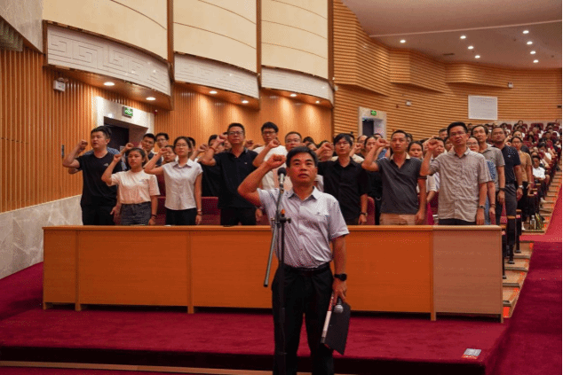 会上,党委副书记、纪委书记唐东升带领新进教师庄严宣誓。新进教师们以激昂高涨的热情表达了他们为教育事业努力奋斗的决心。