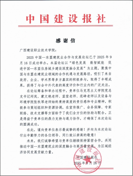 中国建设报社向学校发来感谢信