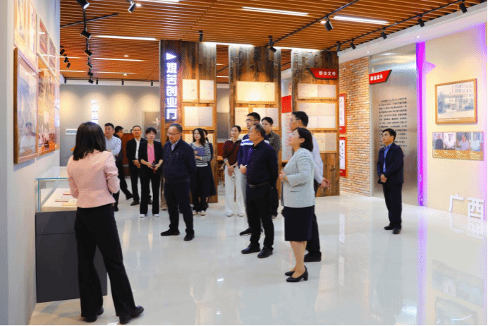参观过程中,学校领导认真听取讲解,详细了解学校在各个历史阶段的发展历程。大家不时驻足端详历史照片、文献资料和实物展品,细致交流询问,共同回望学校不平凡的发展历程,汲取奋进力量。