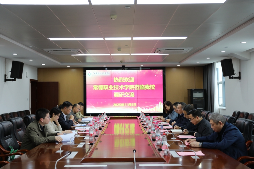 11月5日下午,常德职业技术学院党委副书记、院长周华一行到伟德国际官网考察交流。伟德国际官网党委副书记、校长梁业胜热情接待并出席座谈,招生就业处、教务处、设备与环境学院等相关单位负责人参加交流。