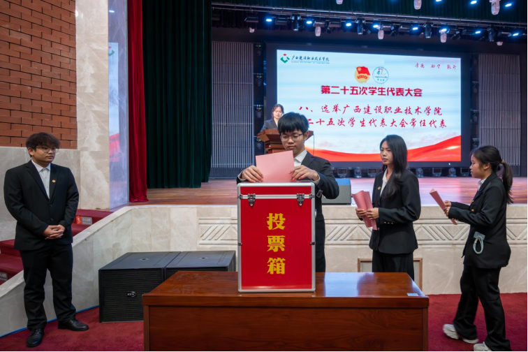 会议期间,全体学生代表以高度负责的态度,认真审议并表决通过了学生会工作报告、学生代表大会提案工作委员会关于提案工作的报告等重要文件。同时,严格按照选举程序,依法依规选举产生3名校学生会主席团成员与14名常任代表。新当选的学生会主席团成员黄沛红代表第二十五届学生会发起倡议。她表示,新一届学生会成员将以坚定的理想信念、过硬的专业本领、强烈的时代担当,扎根同学、服务同学,助力学校发展,在技能报国、强校兴邦的征程中奋力书写青春华章。