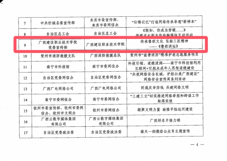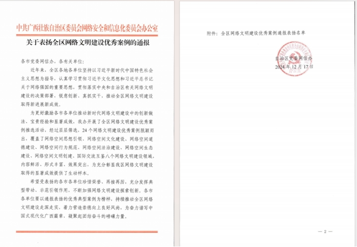《鲁班讲坛》成功入选全区网络文明建设优秀案例,并获通报表扬。伟德国际官网案例是全区教育系统唯一入选案例,并被编入2024年广西网络文明大会的优秀案例集。