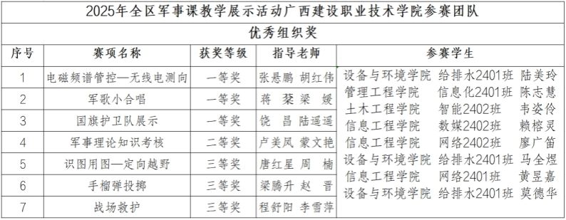 近日,由自治区教育厅主办的2025年度全区军事课教学展示活动在广西南宁落下帷幕,共有来自全区28所学校224名学生选手参加。